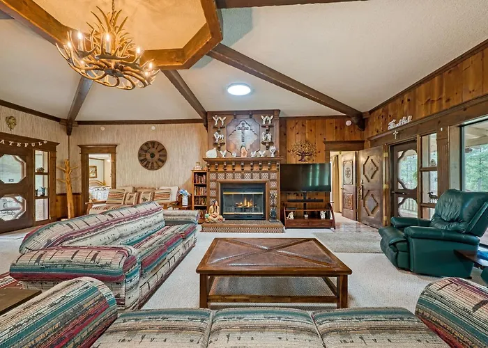 Offering spa therapy and water sports facilities for guests' leisure, Wooded Mountain Retreat With Decks And Fireplace Alpine Cellars Village villa is situated around 7 km from the Free Spirits at Noisy Water. The holiday home features opportunities for canoeing, snow skiing, and hiking in the area, about 10 minutes by car from the locally run outdoor Happy Hiker Ruidoso Shop.